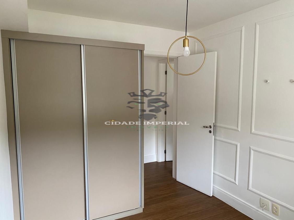 O imóvel possui três quartos, sendo um suíte, banheiro social, sala ampla em dois ambientes, cozinha com armários, quartos com armários planejados, banheiro de empregada e cobertura privativa com jacuzzi e pia de apoio.